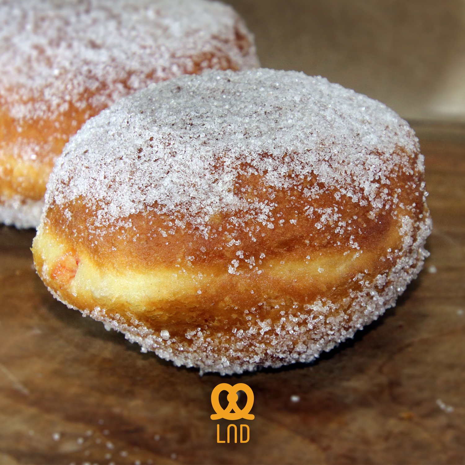 Deliciosos rollos de masa de berlín con trozos de manzana, fritos y espolvoreados con azúcar granulada. Ideal para la hora de la once, o el desayuno, como colación, o como postre.
